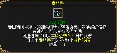 50个春丝缕兑换1个寻香彩蝶。