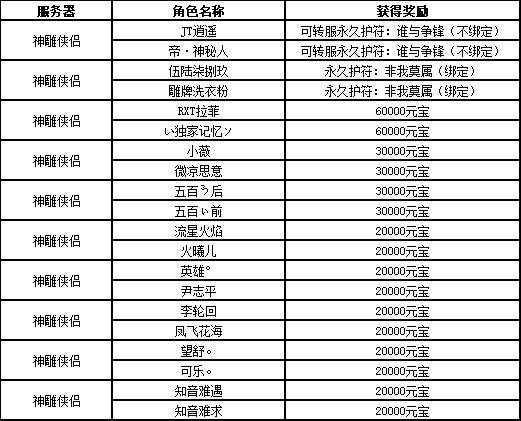 获得的元宝奖励将于15个工作日内发放给获奖玩家对应账号中。