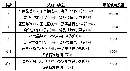 注:如果排名对应角色的使用数量不满足最低使用数,则奖励向下调整为满足最低使用数量档次奖励。