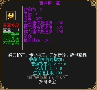 龙魂玉·藏、隐灵玦·藏、破煞·藏、吉祥锁·藏、五行旗·藏、白玉飞天佩·藏、天相·藏,均不可以交易,售价8000元宝;